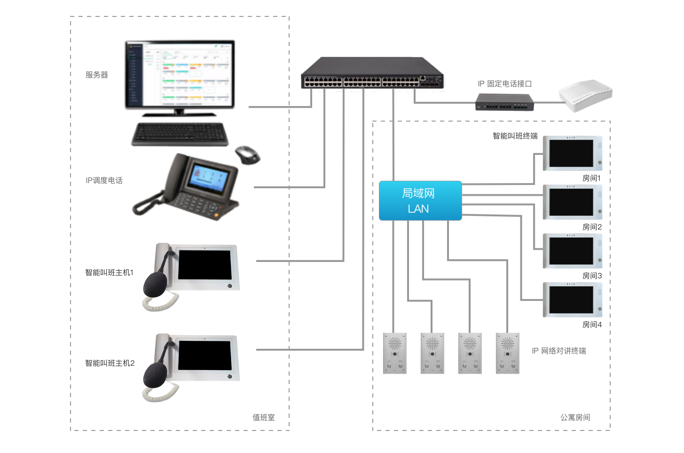 以IP网络为核心,智能叫班系统通过人脸识别、实时对讲和智能报警等功能,显著提升管理效率与安全性,助力铁路公寓及各类服务场所的智能化升级。